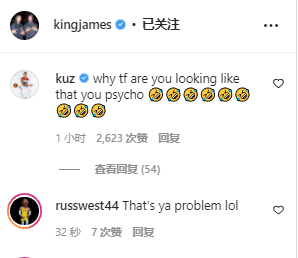詹姆斯回应捡别人眼镜戴这件事,库兹马在评论区调侃老詹:为什么你看起来像那个疯子?