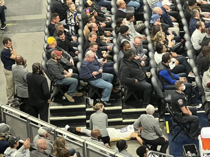 第二节4分多钟,库里休息时没有坐在替补席,先是趴在地板上接受治疗,之后又躺着让队医为他拉伸大腿,所幸库里的大腿伤势无大碍,首节三分频频打铁没有命中,第二节三分球5投2中终于打破僵局,当库里轰进三分时,步行者主场的球迷集体为他欢呼呐喊,很明显,库里又攻陷一个主场。