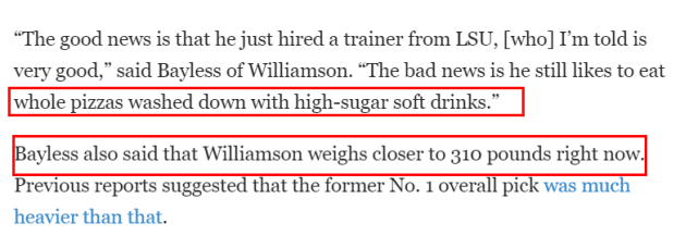 锡安饮食习惯曝光!高糖饮料+整个披萨 名嘴:最新体重近280斤