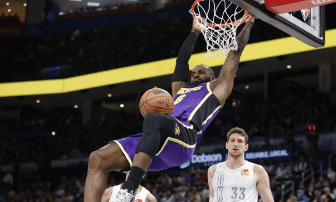 比赛中詹姆斯的表现是非常出色的,他此役20投13中,三分球6投4中,砍下了全场最高的33分,还有5板6助3断2帽,相当全面的数据。要知道的是詹姆斯可是出战的背靠背比赛,而他马上就要37岁了。本赛季的詹姆斯出战15场比赛,有多达7场砍下30+的数据。