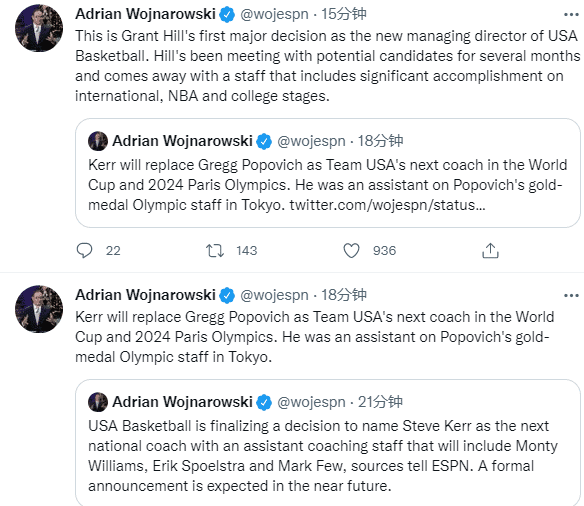科尔的助教团队包括蒙蒂-威廉姆斯(马刺助教)、埃里克-斯波尔斯特拉(热火主帅)和马克-弗;沃纳罗斯基还表示,这是格兰特-希尔作为美国篮球新任总经理的第一个重大决定。最近几个月,希尔一直在与潜在的候选人会面,最终选择科尔成为美国男篮下一任主帅。
