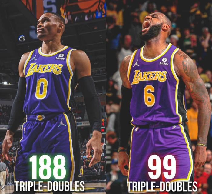 随着三双到手,詹姆斯正式达成100次三双里程碑,成为NBA历史第五人,史上另外四位100+三双先生分别是威少(189次)、大O罗伯特森(181次)、魔术师约翰逊(139次)和杰森-基德(107次);詹姆斯也是现役第二位达成100次三双的球员,现役仅次于威少,目前威少是NBA历史三双王。