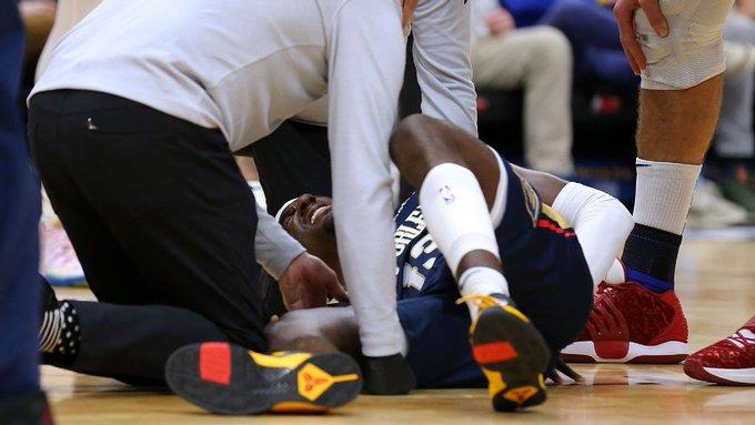 在此前对阵掘金的比赛中,第二节7分37秒,刘易斯进攻时遭遇右膝受伤,捂着右膝倒地不起,表情十分痛苦,队医赶紧上来,随后他因伤离场并且早早退出比赛,替补仅打9分钟便伤退,4投2中拿到5分3篮板。