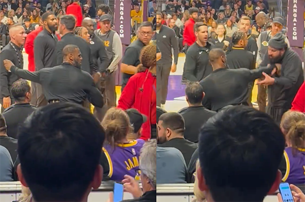 詹姆斯推开球迷一幕曝光:后者违规接触老詹引热议 直接被赶出球馆
