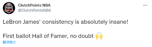 来源:JRS直播网12-08 14:59JRS直播网12月08日讯 湖人巨星勒布朗-詹姆斯有多稳定且不可思议?美媒ClutchPoints晒出詹姆斯的一大历史第一且历史唯一的伟大神迹,詹姆斯已经连续18年场均25+无人能比,美媒直言:勒布朗的稳定性太疯狂了,毫无疑问,名人堂级别的球员。