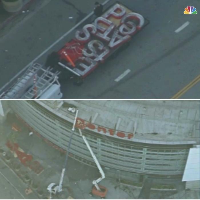 就在今天,湖人主场斯台普斯中心的标志正式被拆除,Staples Center这13个红色字母都已被工作人员拆掉,堆放在球馆前面的地面上,令人无奈而又心酸,如此一幕意味着一个时代的终结,洛城再无斯台普斯中心。