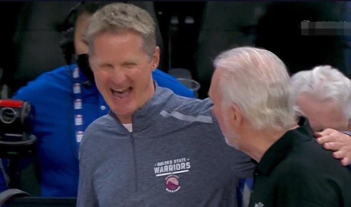 NBA领头羊遭爆冷,将帅仍有说有笑!库里送飞吻,科尔被波波逗乐
