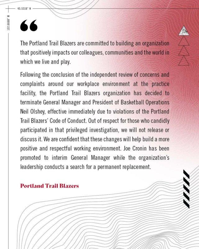 NBA官宣!开拓者解雇总经理奥尔希,被炒原因公布+候选目标曝光!