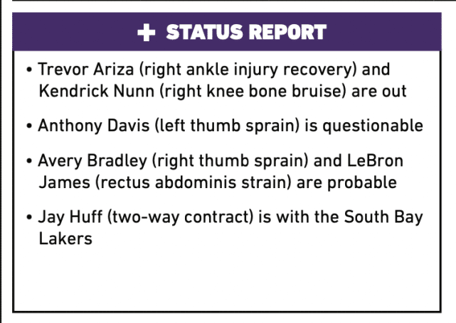 湖人官宣伤情!浓眉因新伤上场成疑 ,詹皇大概率出战快船