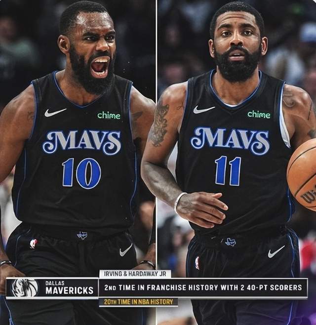 根据统计,欧文和小哈达威是独行侠队史第二对单场同砍40+的组合,上一对是东契奇和欧文在去年2月份时做到。此外,欧文成为NBA历史上首位和3名不同队友都单场同砍40+的球员,此前的搭档分别是詹姆斯和东契奇。