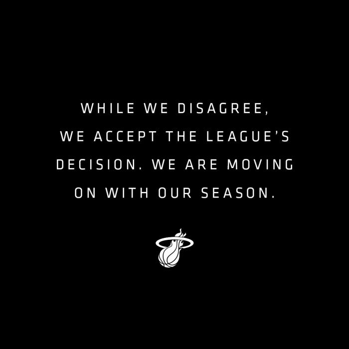 NBA已经官宣违规处罚,热火官方第一时间表示他们接受这样的处罚。