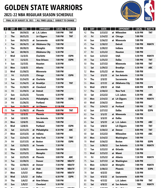 最为关键的是这场太阳和勇士的比赛将会是全美直播,值得一提的是本赛季的勇士82场常规赛,全美直播41场,本赛季联盟第二,仅次于42场的湖人。而这场对阵太阳的比赛前后,是勇士最近6场比赛中,唯一一场全美直播的场次,其他的场次包括对阵快船,都不是全美直播。所以不得不说,冥冥中自有定数,联盟几乎是提前预知到了这场比赛将是万众瞩目的巅峰对决。