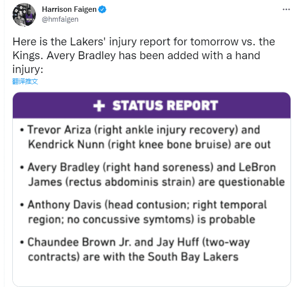 詹姆斯伤势仍未痊愈,湖人又有两大主力受伤!浓眉头部挫伤AB也伤了