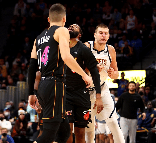 上一场热火大战掘金发生恶劣的冲突事件,大莫里斯恶犯惹怒约基奇,约基奇从背后推倒大莫引冲突,巴特勒圈入其中,赛后更是出现巴特勒带队堵门事件,最终约基奇被禁赛一场,大莫和巴特勒都被罚款,大莫遭遇颈部受伤,自从冲突之后,大莫里斯一直因伤休战,连续缺席11场比赛。