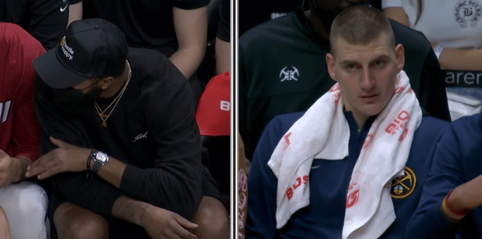 约基奇遭狂嘘!冲突后首次现身热火主场,两位哥哥坐在掘金替补席后面