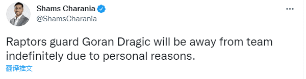 猛龙队总经理Bobby Webster表示,在我们的全力支持下,德拉季奇正在抽出一段时间处理个人事务。