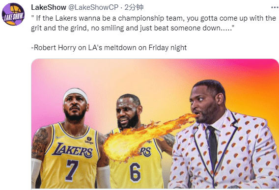 本赛季湖人赢球太难却多次耻辱输球,NBA 7冠王罗伯特-霍里也谈到现在的湖人:如果湖人队想成为一支总冠军级别的球队,你必须拿出勇气和毅力,并且击败对手。