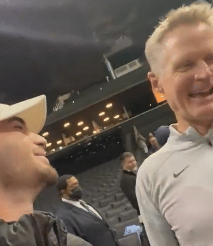 来源:JRS直播网11-27 16:24JRS直播网讯 北京时间11月27日,勇士与开拓者比赛赛前,发生了有趣的一幕,一位现场的球迷拉着勇士主帅科尔录视频,而他的问题直接让科尔慌了!