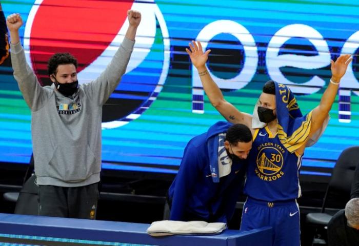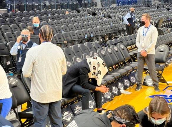 比赛结束克莱仍坐在原地毛巾盖头,哭了?库里追梦陪他说话走回更衣室!