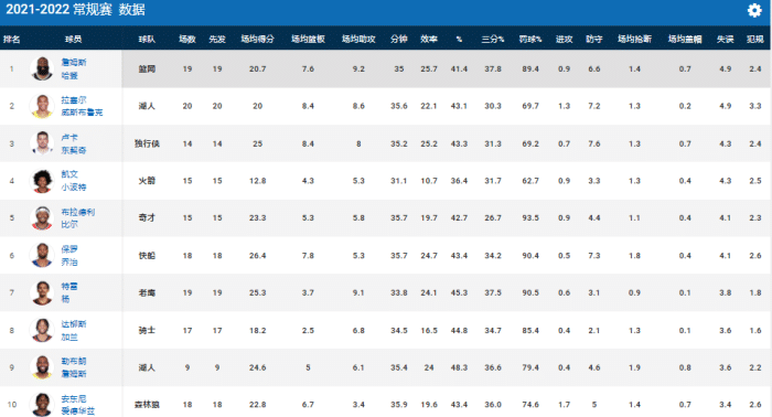 来源:JRS直播网11-26 14:44JRS直播网11月26日讯 新赛季NBA出色进行了接近四分之一,球员们的表现各有千秋,截止到目前,库里领跑场均得分榜、戈贝尔位居篮板榜第一名,保罗成为唯一一名场均助攻上双的球员。而在失误的榜单上,有不少的巨星在列,其中篮网的哈登和湖人的威少处于领跑的位置。
