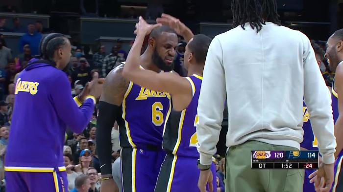 来源:JRS直播网11-25 15:30JRS直播网11月25日讯 ,湖人客场加时击败步行者,詹姆斯出战44分钟,29投13中拿到39分5篮板6助攻,得分创赛季新高,末节关键时刻连得7分,虽然错失绝杀,但加时赛独得8分杀死比赛,尤其是投进锁定胜局的三分球,詹姆斯大秀霸王步疯狂庆祝。