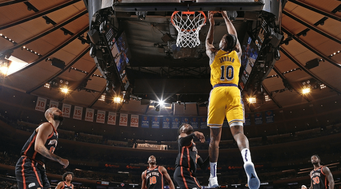 从2011-2012赛季至今,尼克斯在主场迎战湖人11次,战绩是9胜2负,胜率高达81.8%,这也是尼克斯同期对阵联盟所有球队当中,胜率最高的,堪称是湖人克星,只要是在麦迪逊迎战湖人,尼克斯获胜的希望就很大。