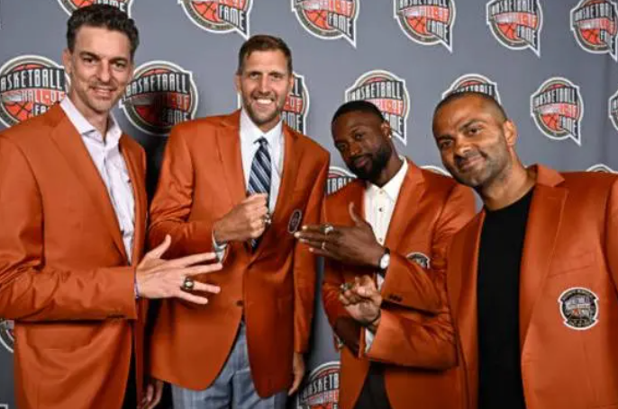 去年8月份,韦德携手保罗-加索尔、德克-诺维斯基、托尼-帕克和马刺主帅波波维奇一起入选2023年奈史密斯篮球名人堂,艾弗森是韦德的引荐人,安东尼、保罗等人到场见证韦德正式入选名人堂。