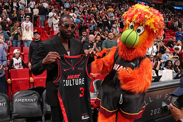 41岁的韦德盛装亮相热火球馆,获得纪念版3号球衣;在热火为其举办名人堂庆祝仪式期间,热火总裁莱利宣布球队将为他立雕像,全场球迷为他起立欢呼,热火主帅斯波尔斯特拉以及众球员都为韦德开心庆祝,韦德敬礼致意。