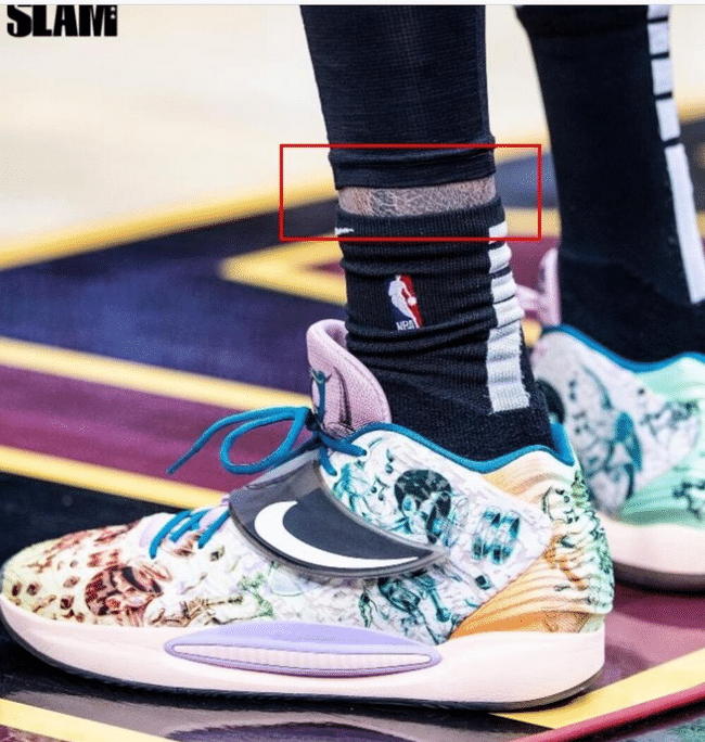 或许是为了给杜兰特的鞋子打广告,媒体给了杜兰特脚部一个特写,结果在这个特写下,杜兰特没有被袜子遮住的脚部皮肤看起来干裂,甚至是脱皮掉屑,媒体发布的这张照片也迎来了很多球迷的吐槽。比如有的球迷吐槽杜兰特还没有适应纽约的天气,有的球迷表示杜兰特太不讲卫生,吐了,也有的球迷给杜兰特推荐起了润肤品。