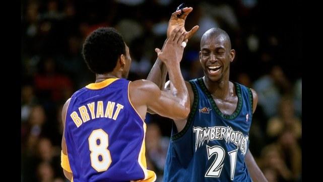在选择过程中,加内特说道:“一号位我会选魔术师,因为他有6英尺9英寸高,能看到所有人。我不会选乔丹,我在二号位会选Kob(科比的昵称),Kob会是我的二号位。”