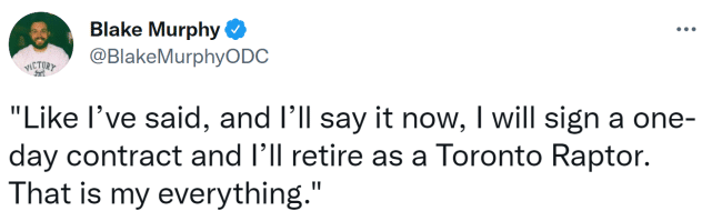 “就像我说过的那样,我现在再说一遍。我会签下一份一天合同,然后以一个猛龙球员的身份退役。那就是全部。”