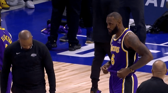 不断整理衣服,詹姆斯紧张了!被驱逐时鼓舞全队,湖人17分逆转