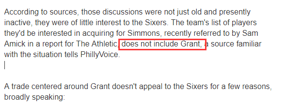 西蒙斯交易最新情况!曝76人索要坎宁安否则免谈,对格兰特毫无兴趣