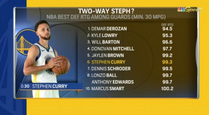 凡尔赛!库里本赛季防守效率后卫第六,科尔:人们没认真看库里的比赛!