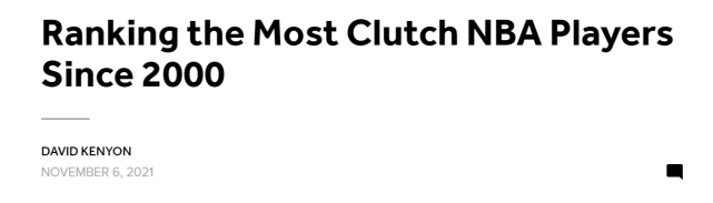 来源:JRS直播网11-07 16:09JRS直播网11月07日讯 谁是关键时刻的最佳球员?北京时间11月7日,知名美媒Bleacher Report(B/R)通过数据评出了21世纪的前8名。他们重点考察的数据是自2000年以来的常规赛和季后赛最后两分钟的投篮数据(分差在一个回合内),而入榜的最低要求是在这个时间段和标准下,常规赛至少出手100次,季后赛至少出手20次。让我们来看看最终排名——