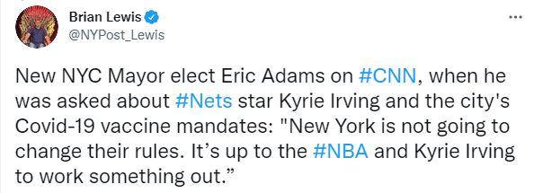 欧文归队仅剩最后一种选择!新市长正式表态:纽约不会改变防疫规定