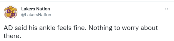 本来浓眉的膝盖就有些不适,今天又险些扭伤脚踝,所幸伤势无大碍;赛后浓眉表示他的脚踝很好,没什么需要担心的。