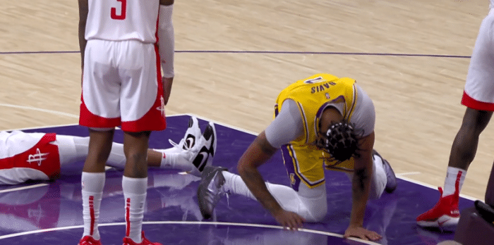 詹姆斯遭惊险一幕,浓眉也遭惊险时刻,不幸崴脚而痛苦倒地,所幸伤势无大碍,浓眉继续留在场上,并且活动脚踝,可浓眉捂着脚踝这一幕真是太惊险。