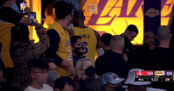 末节,詹姆斯彻底开启得分模式,在101秒内连续打进5球,连得10分打停火箭,可是第四节5分22秒,詹姆斯疑似受伤,离场之后痛苦地蹲在球员通道里,缓了一会后重返赛场,身体应该无大碍;本就是带伤(右脚踝酸痛)出战,这诡异离场一幕太让人担心。