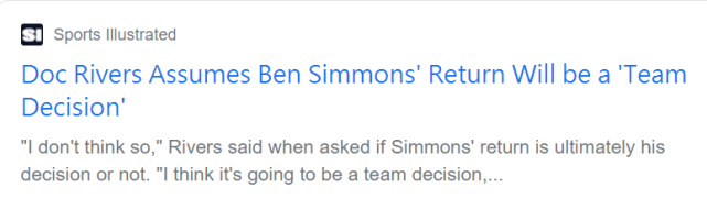 此前,也有记者建议西蒙斯先上场打球,用自己的表现来证明价值,这样才有更大的机会通过交易离队。生涯至今,西蒙斯场均15.9分8.1篮板7.7助攻,投篮命中率56%,三分命中率14.7%,罚球命中率59.7%。