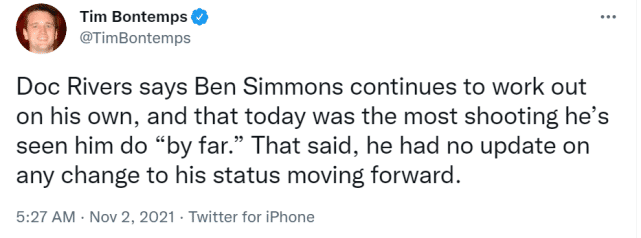 用功还来得及?西蒙斯训练投篮量激增!里弗斯:我见他投最多的一次