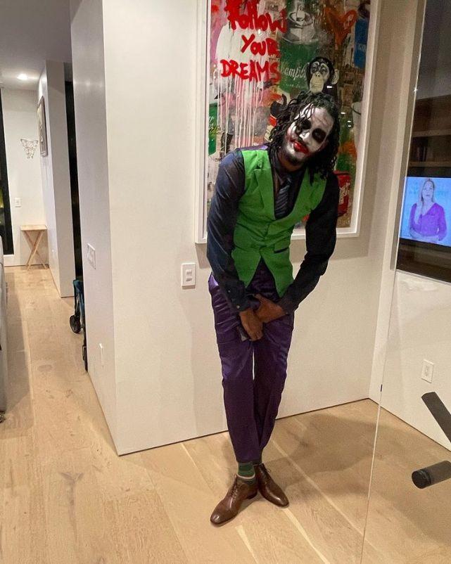 阿里扎扮的是著名反派角色“小丑”,看看他这个姿势,像不像?赛季至今,阿里扎一直在养伤,还没上过场。纳恩这个扮相是不是也吓到你了?