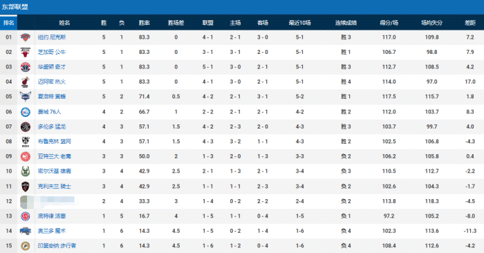 来源:JRS直播网11-01 15:36JRS直播网讯今天NBA常规赛场次并不多,但有多支强队出战,东部的篮网终于拿下连胜,击败活塞之后本赛季第一次尝到连胜的甜头。雄鹿输给表现强势的西部第一决赛,吃到3连败。黄蜂击败开拓者,一扫近期的颓势,本赛季依旧有不错的开局。赛季至今,东部的格局变化还是很大的,接下来我们一起来看看最新排名: