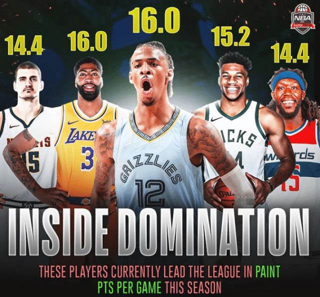 美媒晒内线得分排名!莫兰特浓眉并列第一 湖人弃将位居第四