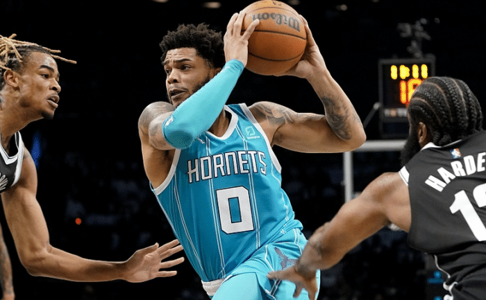 排名第八的是迈尔斯布里奇斯,本赛季场均贡献26.2分8篮板,投篮命中率高达52.7%,布里奇斯本赛季进步明显,目前黄蜂以4胜1负,排在了东部第3