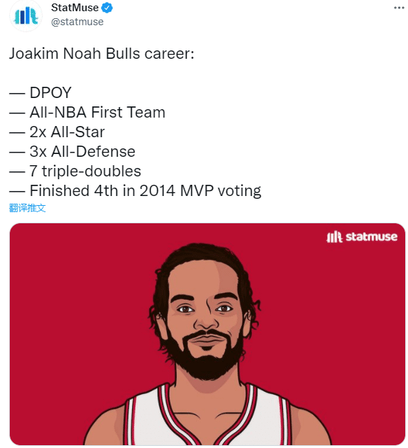 诺阿是在2007年首轮第9顺位被公牛选中,生涯为公牛效力9个赛季,曾两次入选全明星(2013年和2014年)、三次入选最佳防守阵容,一次NBA最佳阵容以及夺得DPOY年度最佳防守球员,在2014年MVP最终投票中,诺阿总票数排名第四。