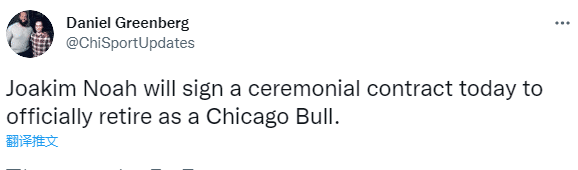诺阿确定退役并且正式成为公牛队新的篮球大使,诺阿本人表示:这意味着很多,我一生都是公牛人。