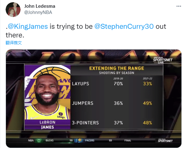 詹姆斯真变了!场均出手近10次三分,美记调侃:他正努力变成库里