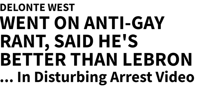 来源:JRS直播网10-26 15:04JRS直播网10月26日讯 ,美媒TMZ报道了前NBA球员德隆蒂-韦斯特一周前被捕的细节, 他在曝光的视频中高喊:“我比勒布朗-詹姆斯强,我比乔丹更好,每一项运动,我都是最好的,你们都给我闭嘴!”