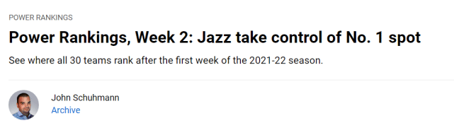 NBA官方实力榜更新!爵士居首勇士第二,篮网第五湖人仅列第九